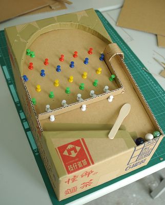 一個小紙箱,加上一些創意,可以變成一台小孩子都喜歡玩的彈珠台
