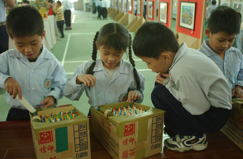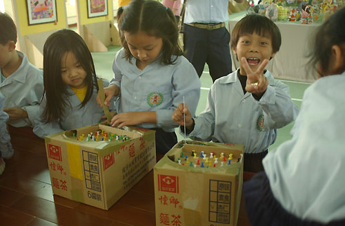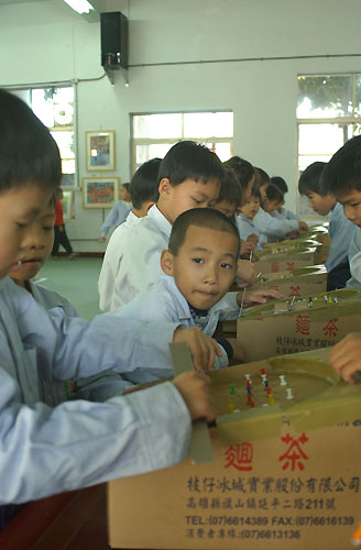小朋友們忙著玩彈珠台,都忘了要回教室上課了