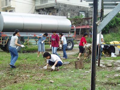 今天的任務,也是要解決殘餘的野草(這些野草長得真是XX的快),今天有旗美高中數十位同學來幫忙鋤草(前面蹲的是枝仔冰城吳副總),野草若有知,想必正在皮皮挫.....
