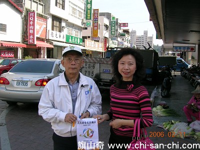 旗山鎮形象商圈促進會 20060211 吳月鳳(圖)/文:柯坤佑 由旗山第一蟀哥負責室內導覽 旗山資深帥哥陳周城先生負責室外導覽 眾人關心旗山車站的前途 接受社長錦旗