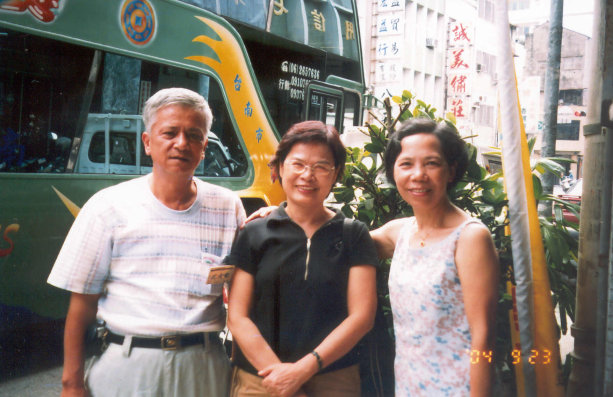 住在台南的文友蔡碧航,未參加訪問團,但仍抽空前來與文友小敘一下(左至右:沈文台、蔡碧航、六月)