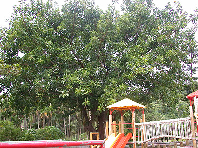 植物名:印度橡膠樹 【回旗山植物圖鑑】【回旗山奇首頁】 科名:桑科 別名:緬樹 常綠喬木,可達30公尺,有氣根,葉厚實,革質,全緣,互生,圓形或長卵形,先端尖突,新芽紅褐色,隱花果,樹幹切開會有大量乳汁,從前是橡膠原料。耐陰性頗強,耐旱喜多濕氣候。具熱帶景色之觀葉植物,適公園、綠地園景樹,單植或列植;盆景。