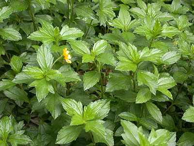 多年生草本,莖枝伸長呈蔓性,葉三叉掌狀或三裂披針形,對生,鋸齒緣,葉面光澤,葉背有細毛,花鮮黃,終年有花,夏至秋季盛開,生性強健,耐旱又耐濕。