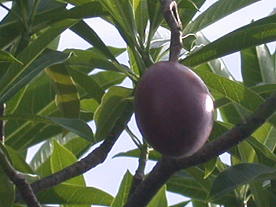植物名:海檬果 【回旗山植物圖鑑】【回旗山奇首頁】 科名:夾竹桃科 別名: 海檬果本省分佈於北部、東部、恆春半島、蘭嶼等海岸。株高可達8公尺,葉輪生,倒披針形,全緣,革質,花白色,五瓣,夏、秋季開花,核果呈卵形,串串懸掛枝下。 莖、葉、果均有白色汁液,具劇毒,不可誤食。其術冠呈傘形,枝葉濃密,耐風耐旱,成長迅速,為優良之園景樹。生性強健,只要表土深厚、排水良好之地均能生長良好。性喜高溫,生育適溫約22∼32度。