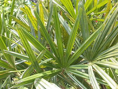 植物名:觀音棕竹 【回旗山植物圖鑑】【回旗山奇首頁】 科名:棕櫚科 別名: 多年生木本植物,性喜高溫多溼,耐蔭性強,盆栽後可做室內植物觀賞,育苗可用分株法及播種法,由於繁殖容易,故本省幾乎任何庭園的角落都可見其蹤跡。葉色常綠,永遠翠綠挺拔。